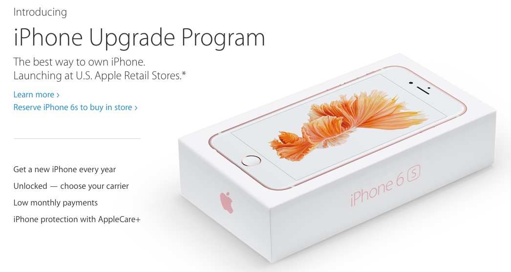 Скажем, вы захотели купить iPhone 6s за $649 и поучаствовать в программе Apple Upgrade. Это обойдется вам в $32,41 в месяц. Общая сумма выплат в итоге составит $778, поскольку вас автоматически подписывают на гарантийный сервис AppleCare+. Он предполагает два года предоставления технической поддержки, два года гарантии и полную замену телефона если вы, например, уроните или утопите свой экземпляр.