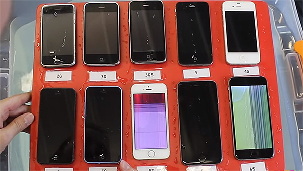 Свой эксперимент блогер назвал «самым масштабным в мире», имея в виду, что никто раньше не проверял все поколения iPhone на водонепроницаемость за раз. Он нашел все модели смартфонов, представленные Apple, — от iPhone 2G до новейшего iPhone 6s. Всего в тесте приняло участие десять телефонов.
